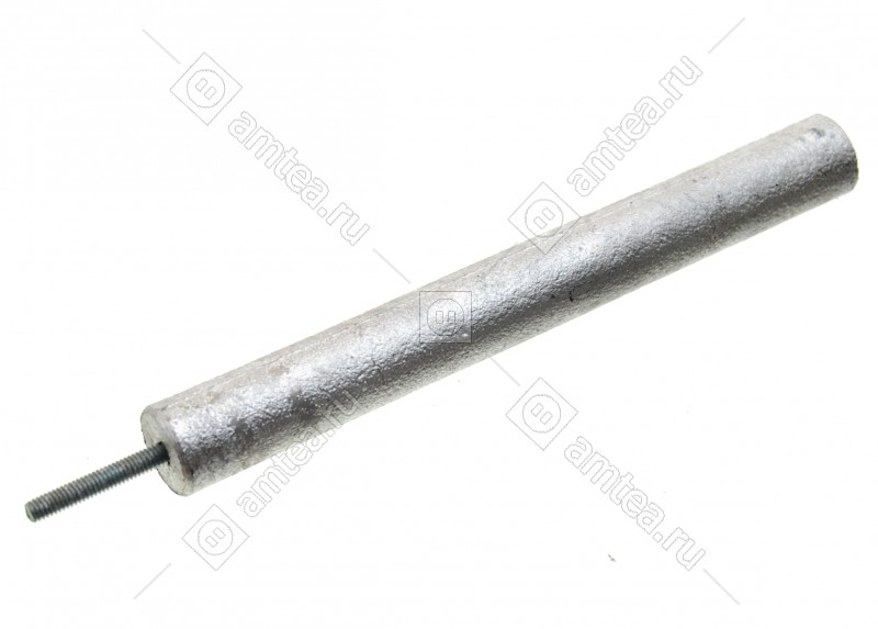 Анод – это тонкий круглый стержень, на который нанесен слой магниевого сплава. В центре этого стержня находится резьбовая шпилька М4, М6, М8 и тд.при помощи которой он крепится рядом с ТЭНом.Задача анода – предотвращение образования накипи на ТЭНе. При нагревании воды накипь образуется в результате выпавших в осадок солей тяжелых металлов. За счет повышенной активности магния они вступают в реакцию с ним, а не с железом, из которого сделаны стенки бака. Плотная, как камень, накипь, делается рыхлой, отделяется от стенок бака и ТЭНа и хлопьями осаждается на дно. Мягкую накипь легко удалить во время чистки прибора.